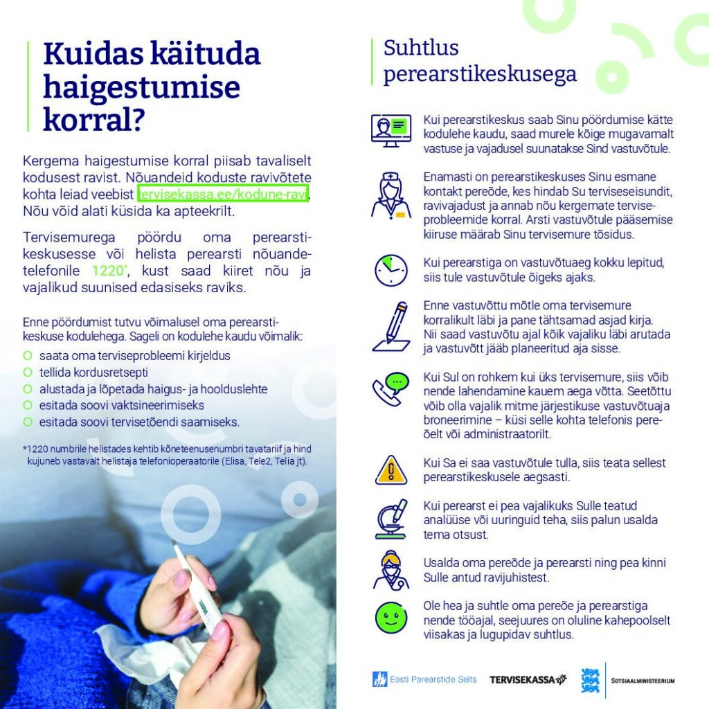 Tervisemure korral palume alati eelnevalt aeg kokku leppida kas e-perearstikeskuse kaudu või telefonil 6 525 250.